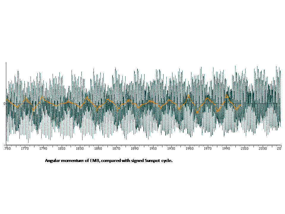 MV: Yes, and given the tight correlation between Earth-Moon angular momentum changes and solar cycle timings …the tendency of the associative mind runs riot. 🙂