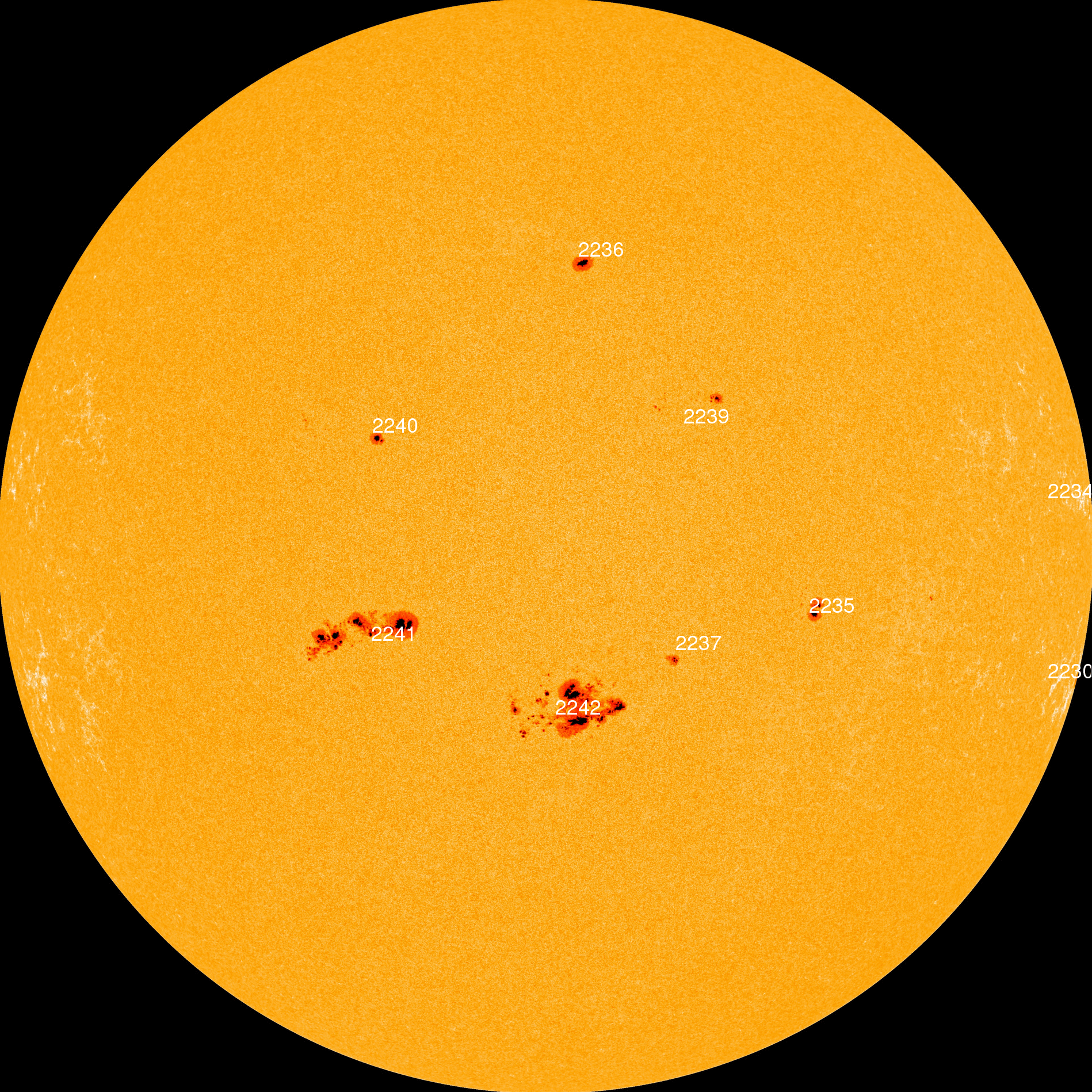 See the massive sunspots Oct 28-29. If you start the archive on the 27th, and go forward, you can see a giant sunspot group develop in one day.