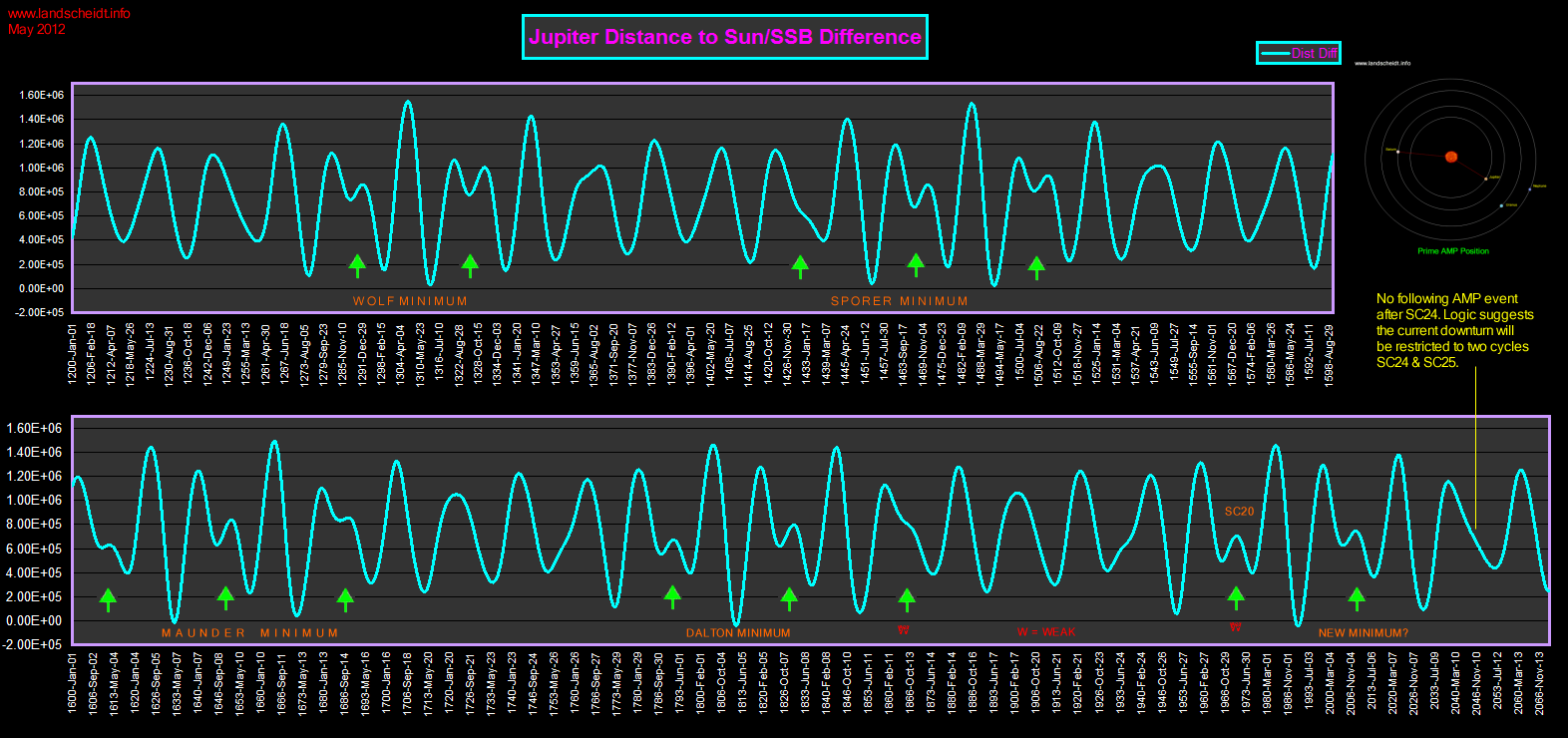 Which is also near the double period of Landscheidt’s IOT (Impulse of Torque) describing the average period of alignment of the Sun, Jupiter and the COM (Centre of Mass of the Solar System).