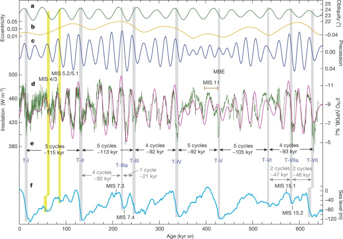 I would draw a different conclusion, that figure 5a actually makes it clear that all the post-MPR interglacials are initiated by obliquity peaks lagged with a delay of a few thousand years. Every second or third obliquity peak initiates an interglacial when it combines maximally with eccentricity and precession to give the largest warming input. This is all well known and clearly understandable, and it’s strange that Milankovitch denial is still ongoing.
