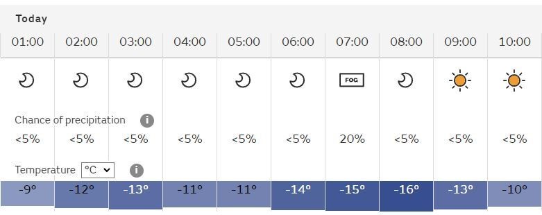 Temperatures dipped as low as -10C (14F) in parts overnight, with Tulloch Bridge and Eskdalemuir in Scotland recording -8C (18F).